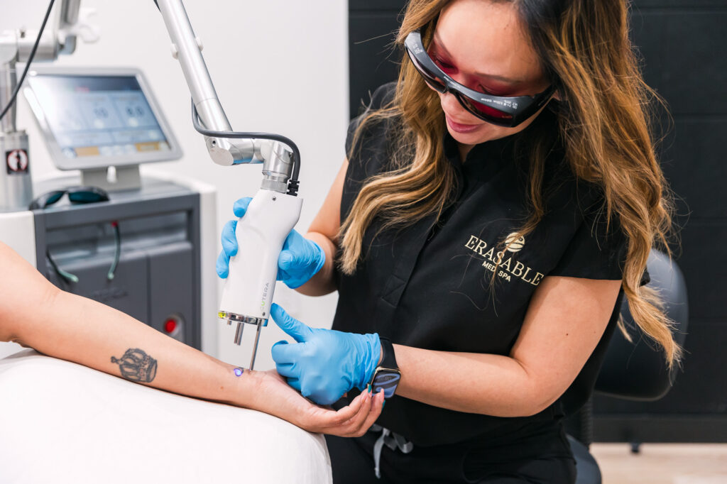 As a Veteran-owned business, Erasable Med Spa is dedicated to serving our community both locally and globally. We believe in paying it forward, whether that’s through pro bono work for victims of human trafficking or providing complimentary radiation tattoo removal to cancer survivors. Additionally, for the last 10 years, we have provided free tattoo removal on Veterans Day and Memorial Day. We have partnered with organizations like Soul Survivor Ink, Mary Lee’s House, and the Wounded Warrior Project to do everything we can to uplift our community through the spirit of service.